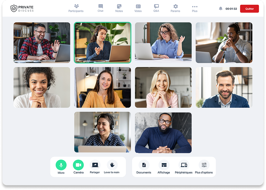 Organisez des réunions vidéo sécurisées et de haute qualité pouvant accueillir jusqu’à